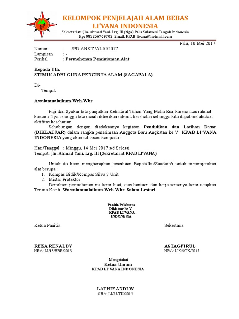 Contoh Surat Peminjaman Alat Pdf